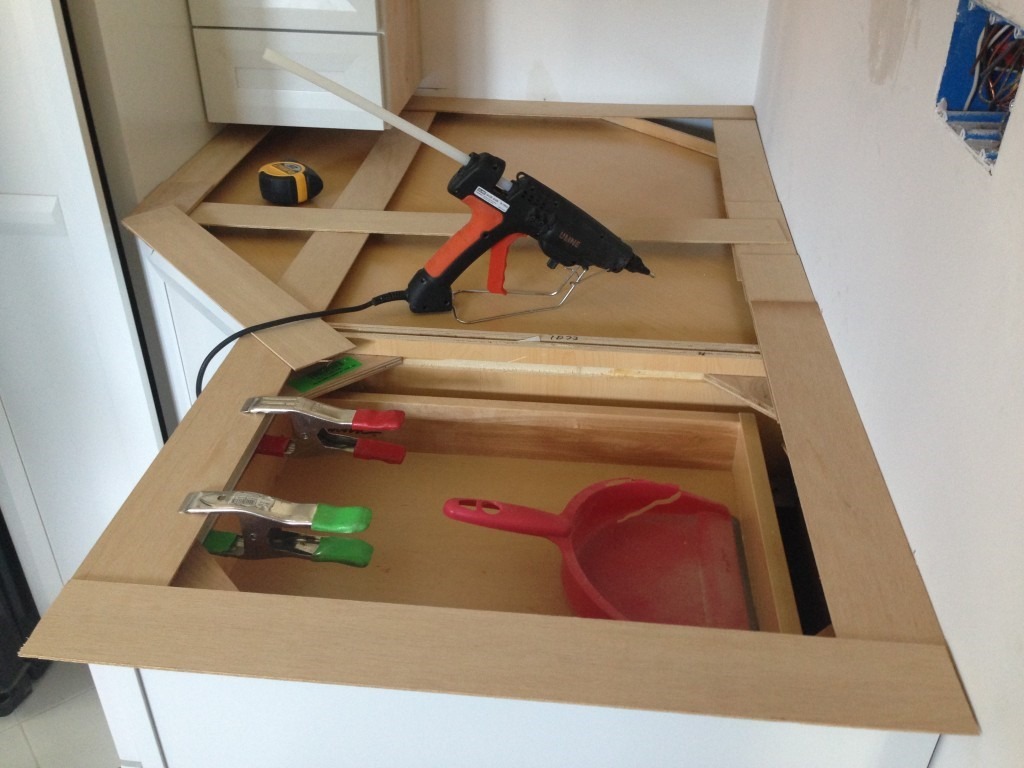 This next picture shows the template created for the counter to run along one of the kitchen walls…